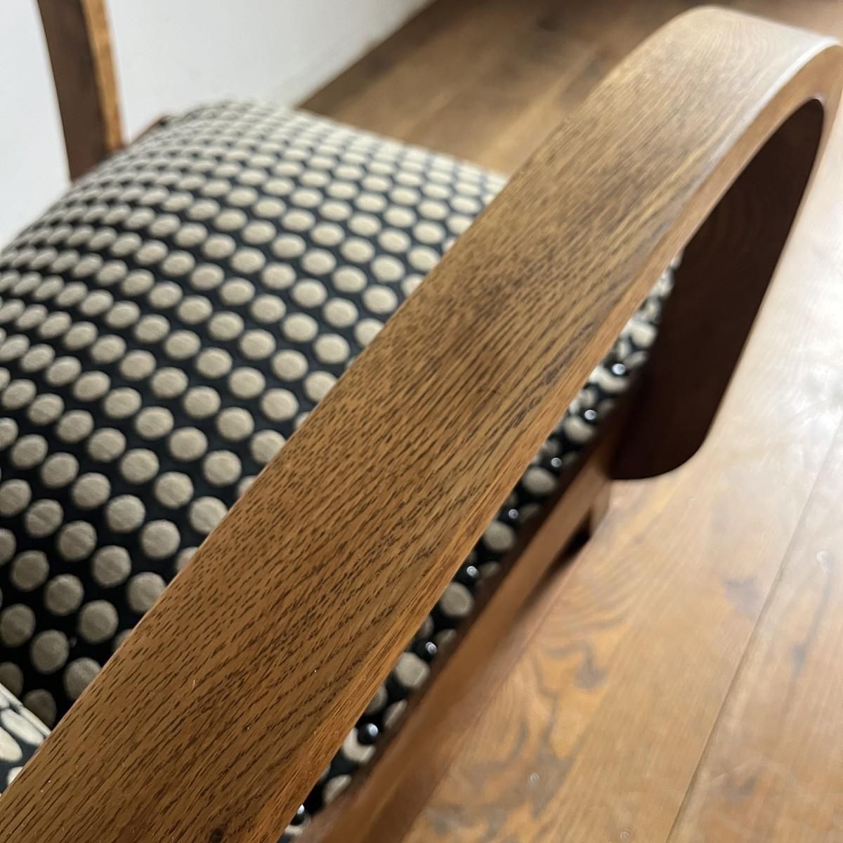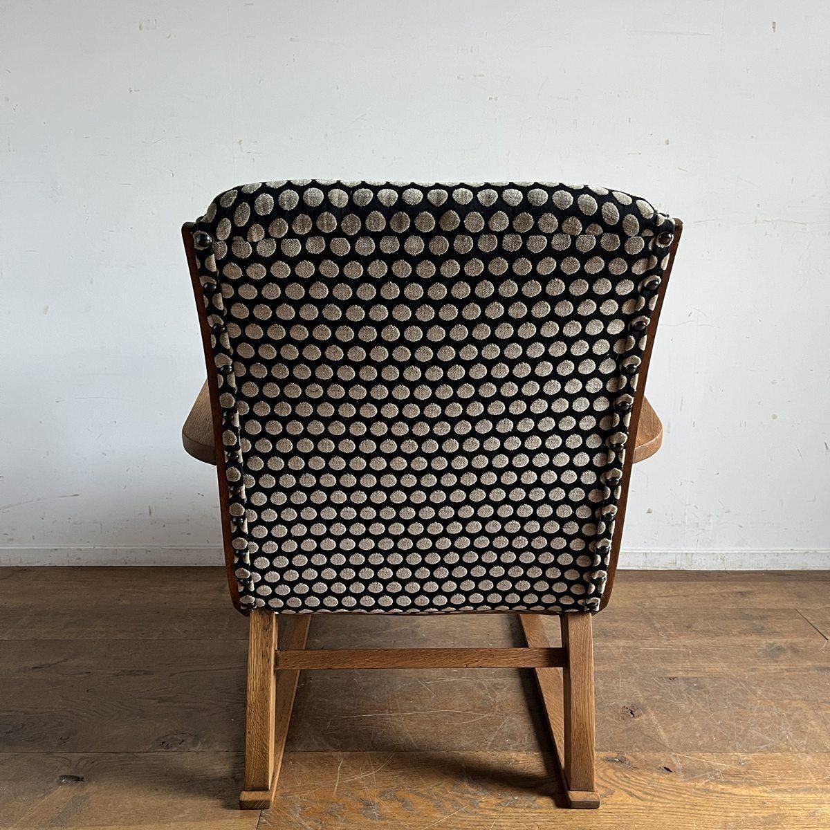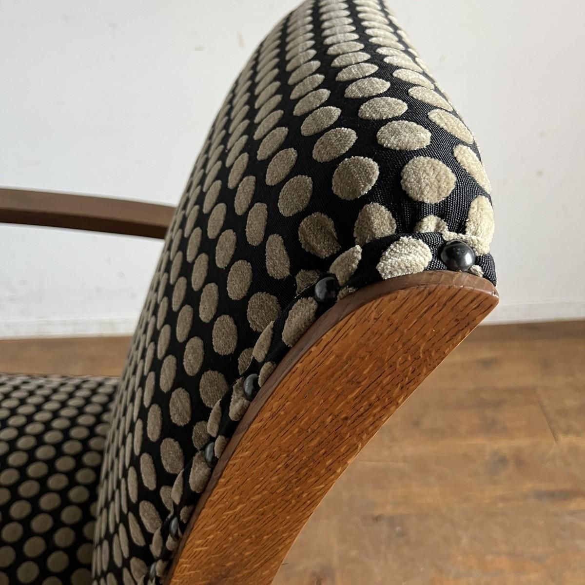 ほどよい硬さに仕上げ、座り心地もよく、張り替えた布地は、日本製のドット柄。
