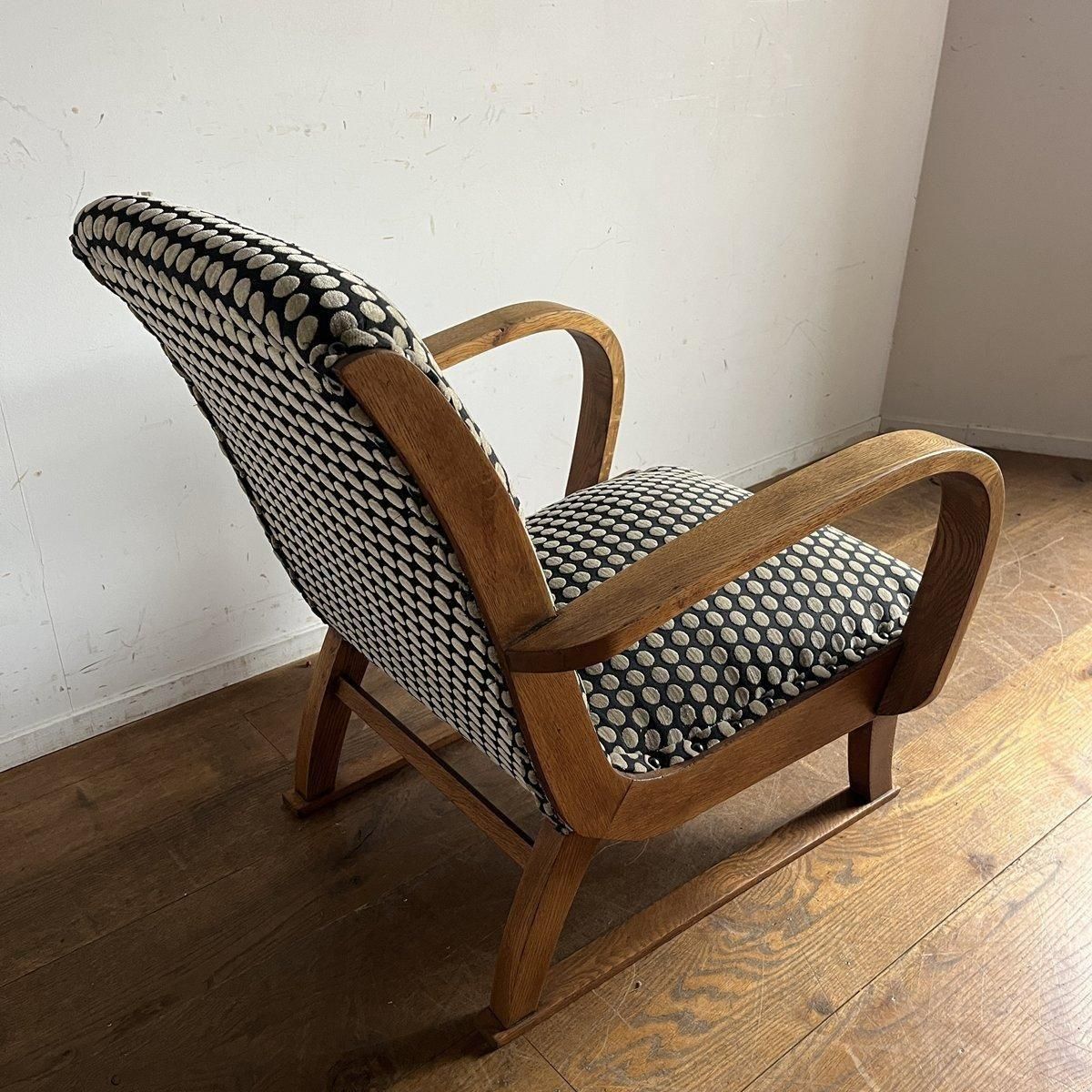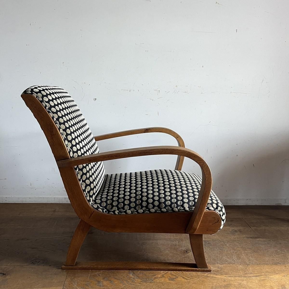 柔らかな曲線の木のフレームが魅力的な一人掛けソファ